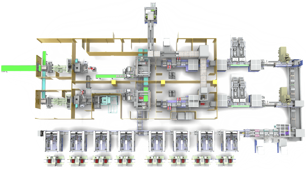 3.在線注塑設(shè)備及后段全部為雙線并行工藝,注塑設(shè)備單線設(shè)計產(chǎn)能為3000發(fā)每小時。